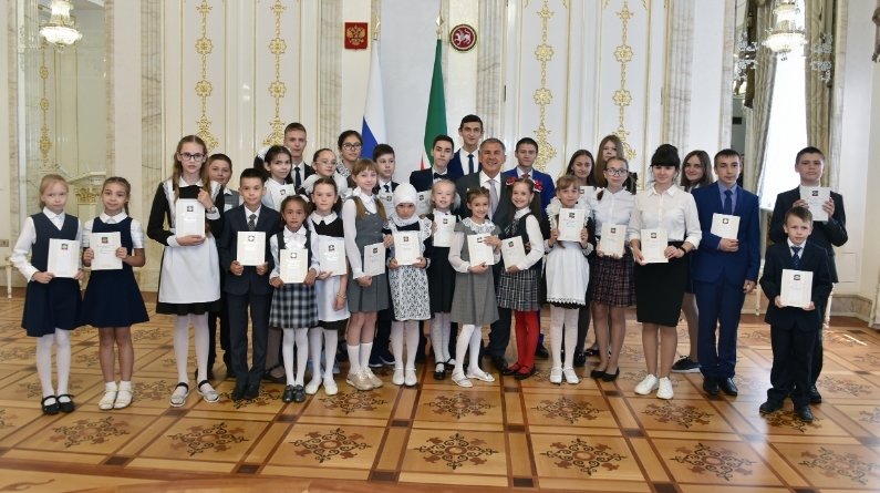 Президент Татарстана поздравил всех с высокими результатами и заслуженной оценкой успехов в учебе. Он также выразил уверенность в том, что дневники, которые сегодня вручили ребятам, будут пополняться только пятерками.