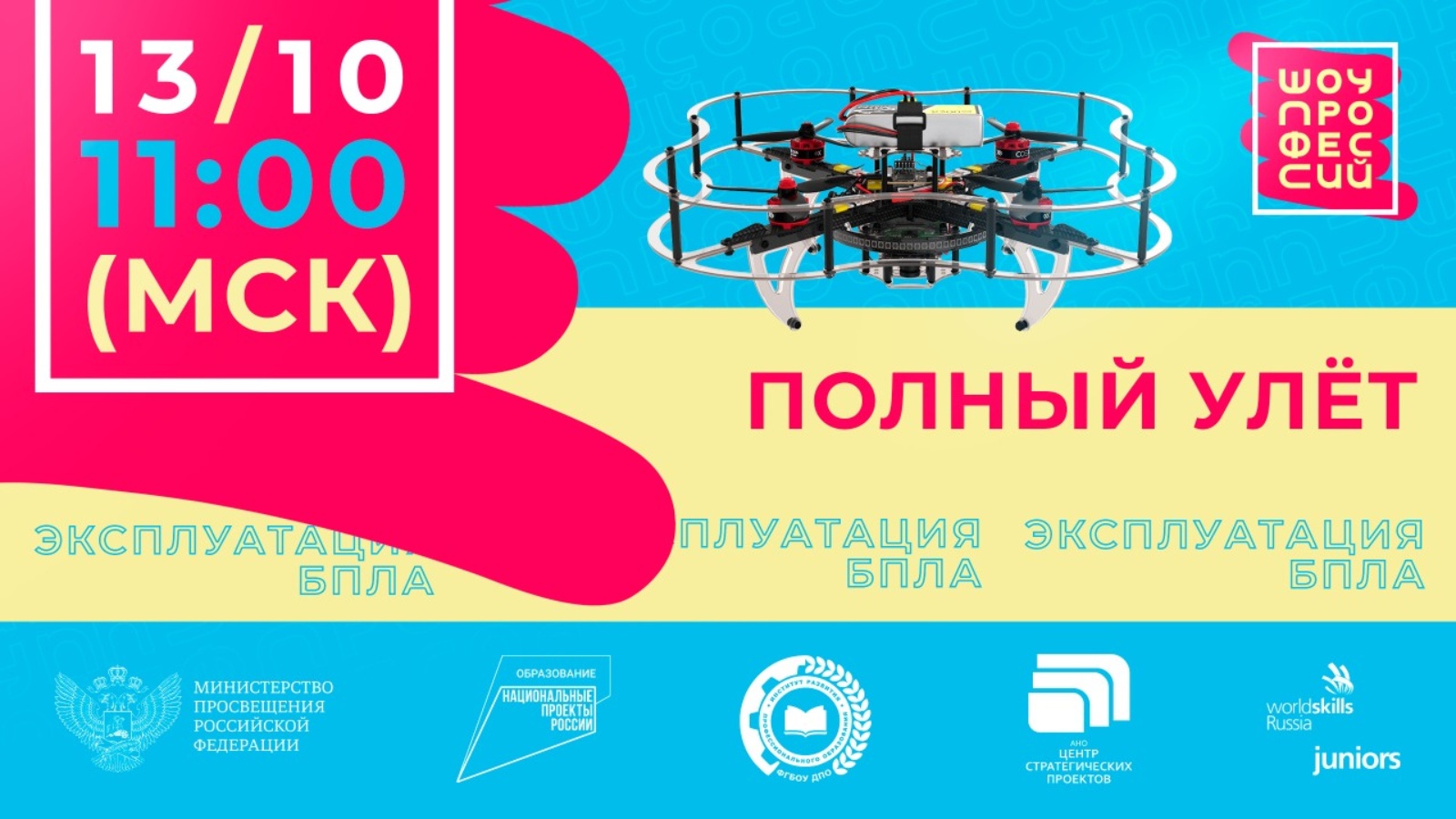 Сегодня в 11:00 по московскому времени в эфир выйдет новый выпуск открытого онлайн-урока проекта «Шоу профессий» – «Полный улёт», посвящённый профессии оператора беспилотных летательных аппаратов. Проект инициирован Минпросвещения России.