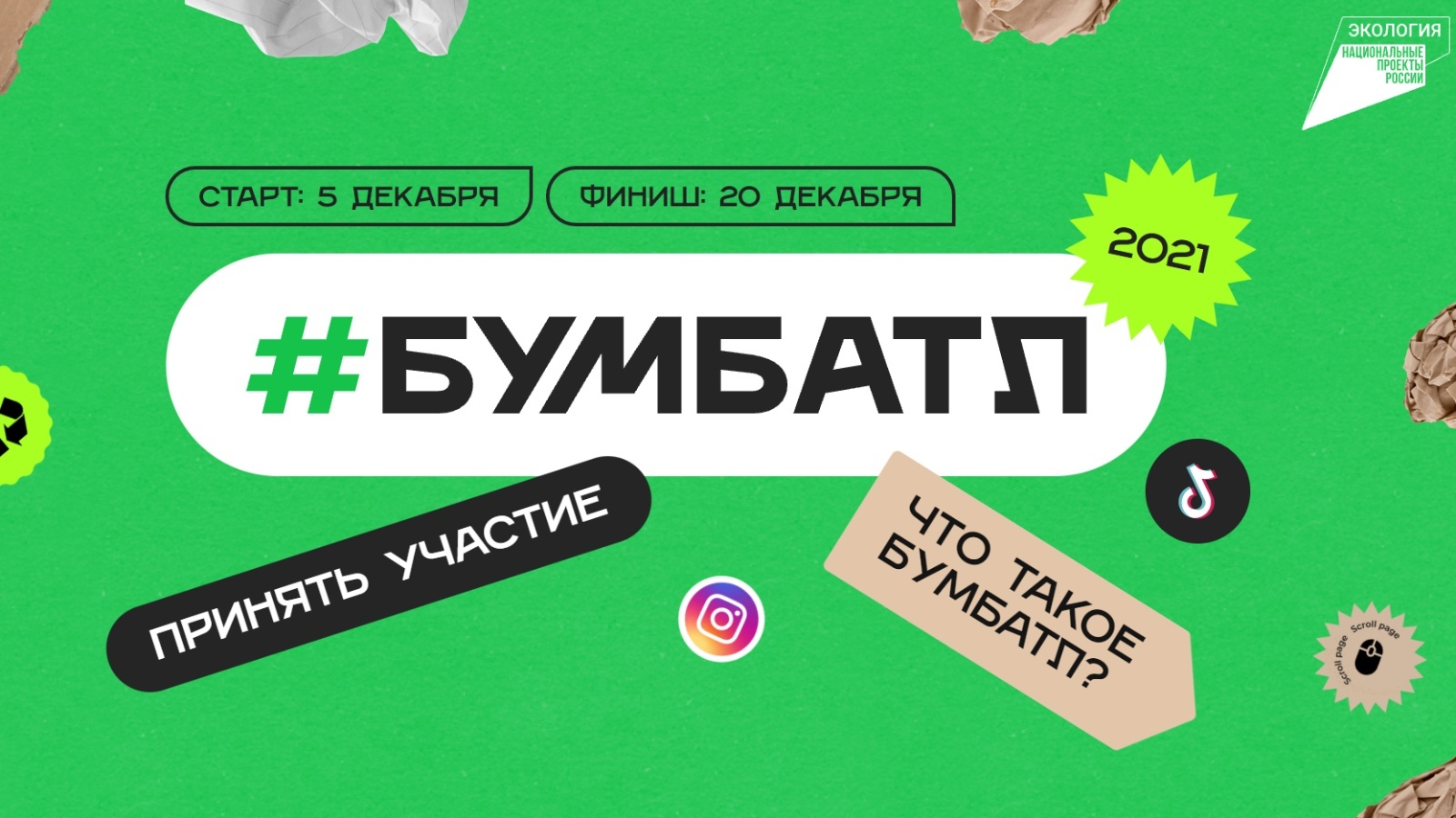 2) выложить пост в соцсетях с хештегами #БумБатл, #нацпроектэкология;