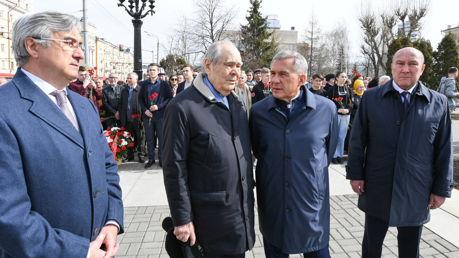 В церемонии возложения цветов приняли участие Государственный советник РТ Минтимер Шаймиев, министр культуры РТ Ирада Аюпова, заместитель Председателя Государственного Совета РТ Марат Ахметов и другие.