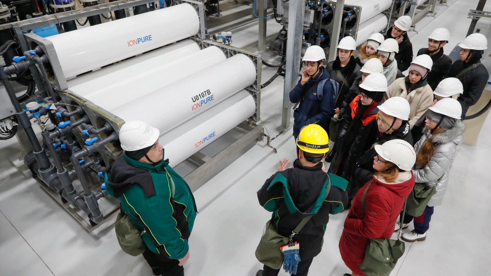 Главной целью экскурсии стало изучение работы новейшей установки химводоочистки и участка очистки промышленных сточных вод. Для студентов третьего курса, обучающихся по специальности «Водоснабжение и водоотведение», уникальное оборудование и системы «ТАНЕКО» представляют особенный интерес.