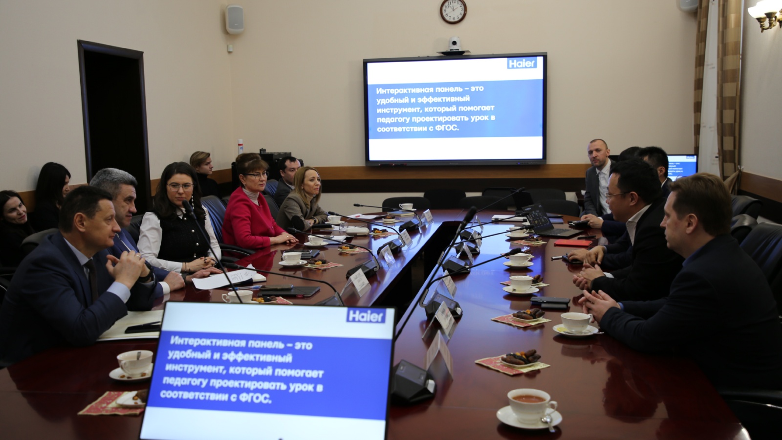 Представители делегации презентовали оборудования компании. Обсуждались вопросы сотрудничества по использованию интерактивных панелей Haier в образовательных учреждениях на территории Республики Татарстан.