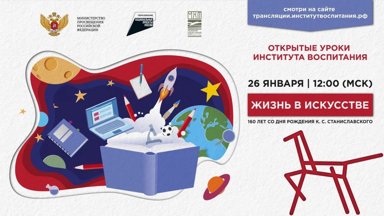 26 января в 12:00 состоится Всероссийский открытый урок «Жизнь в искусстве», посвященный 160-летию со дня рождения русского и советского режиссера и реформатора театра Константина Сергеевича Станиславского.