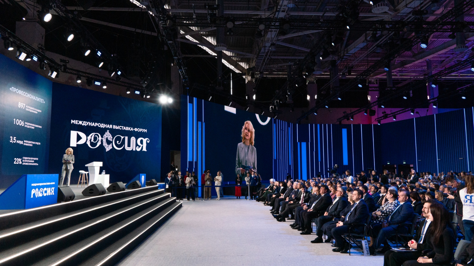 В павильоне № 75 Международной выставки-форума «Россия» заместитель Председателя Правительства Российской Федерации Татьяна Голикова и Министр просвещения РФ Сергей Кравцов выступили на пленарной сессии «Разговоры о важном: сфера образования» и рассказали о достижениях российской системы образования, обновлении ее инфраструктуры и содержания, развитии системы воспитания и поддержке педагогического сообщества. Мероприятие прошло в тематический День образования в рамках Форума национальных достижений.