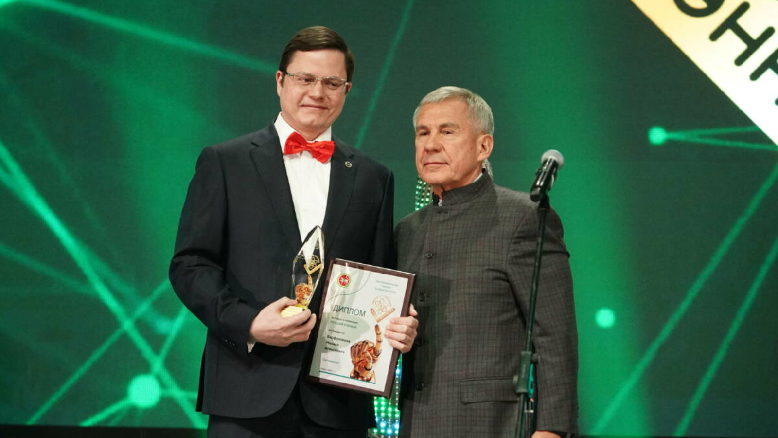 На звание лучшего ученого года претендовали два номинанта: заведующий кафедрой общей патологии Казанского государственного медицинского университета, доктор медицинских наук Сергей Бойчук и заведующий кафедрой разработки и эксплуатации месторождений трудноизвлекаемых углеводородов, кандидат химических наук института геологии и нефтегазовых технологий Михаил Варфоломеев. Награда досталась последнему, он получил из рук Рустама Минниханова диплом и памятные подарки.