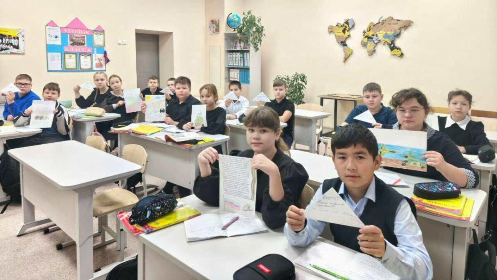 В Новошешминской гимназии прошла трогательная акция «Письмо солдату». Юнармейцы и школьники подготовили для участников СВО теплые послания с детскими рисунками и открытками.