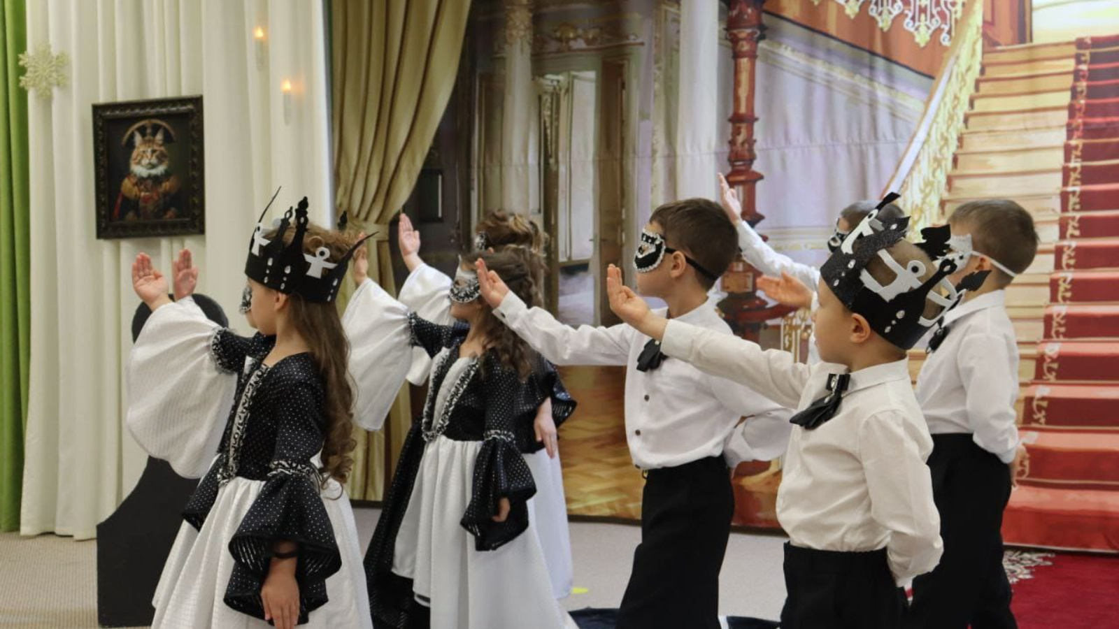 В мероприятии приняли участие команды из двенадцати детских садов района. Дети продемонстрировали исполнение классических парных танцев: менуэт, вальс и полонез.