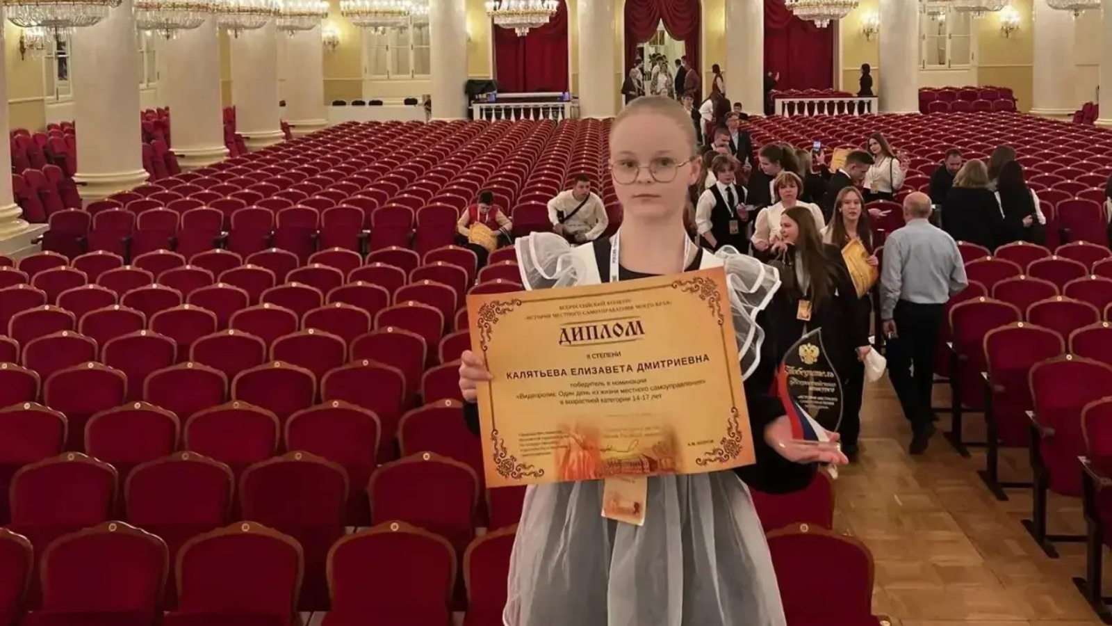 Победу в возрастной категории 14–17 лет в номинации «Видеоролик» одержала ученица школы №16 Зеленодольского района Республики Татарстан Елизавета Калятьева с работой «Один день из жизни местного самоуправления».