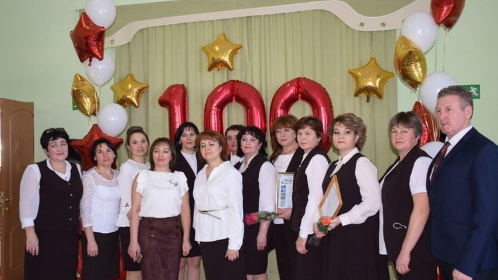 Юбилей уңаеннан, район башлыгы мәктәпкә 100 мең сумга сертификат тапшырды. Ветеран укытучылар Людмила Падисовага белән Клавдия Мироновага һәм хәзер белем бирүче укытучыларга Мактау грамоталары бирделәр.