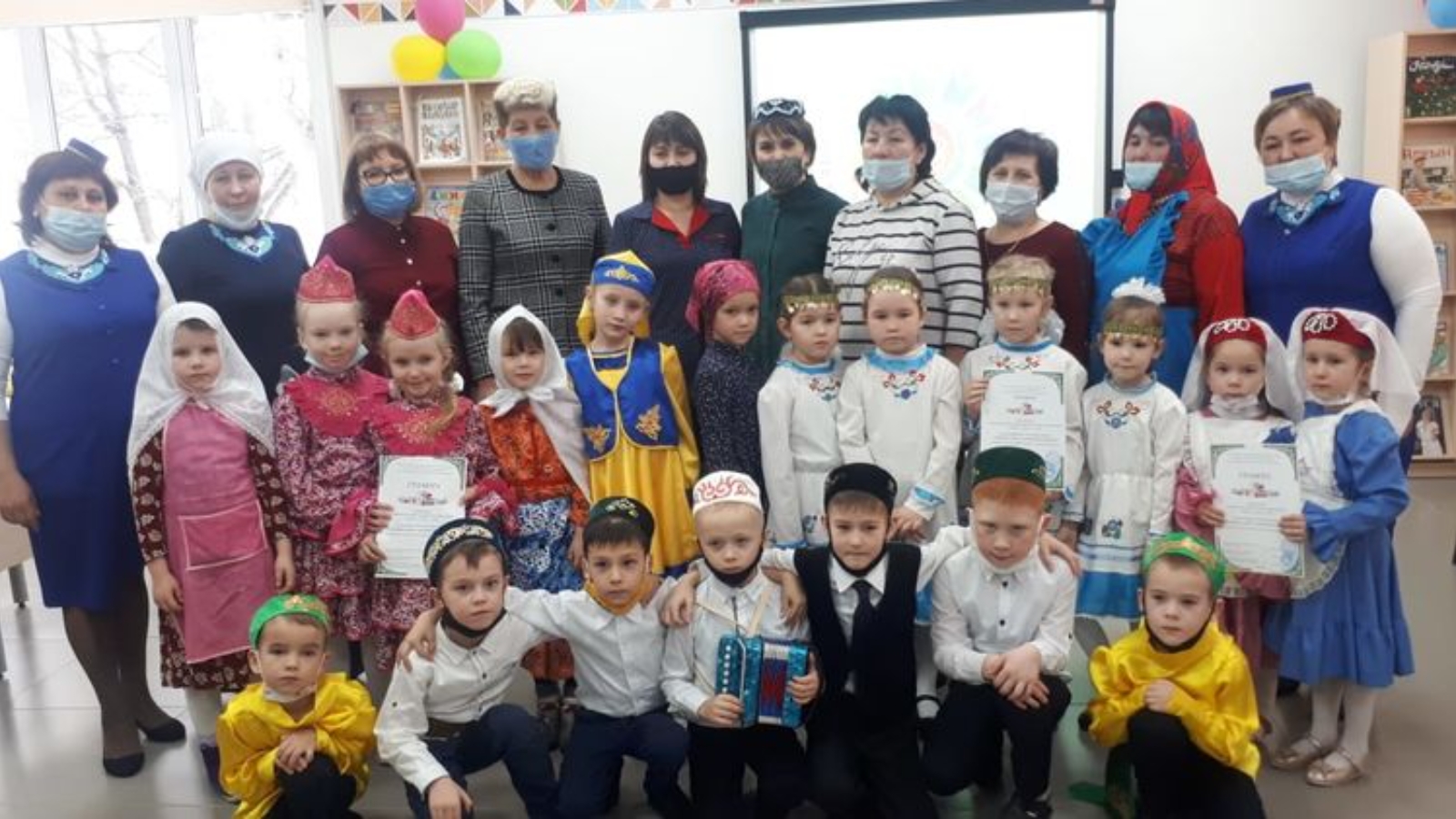 Китапханәче Фирдания Закирова балаларга презентация күрсәтте, район территориясендә яшәүче халыкларның тарихы, бер-береңә карата толерант мөнәсәбәт турында сөйләде. Шулай ук ул балаларны районның тарихи объектлары һәм танылган кешеләре белән таныштырды, ә аннары бергәләп «Туган тел» дигән видеоклипны карадылар.