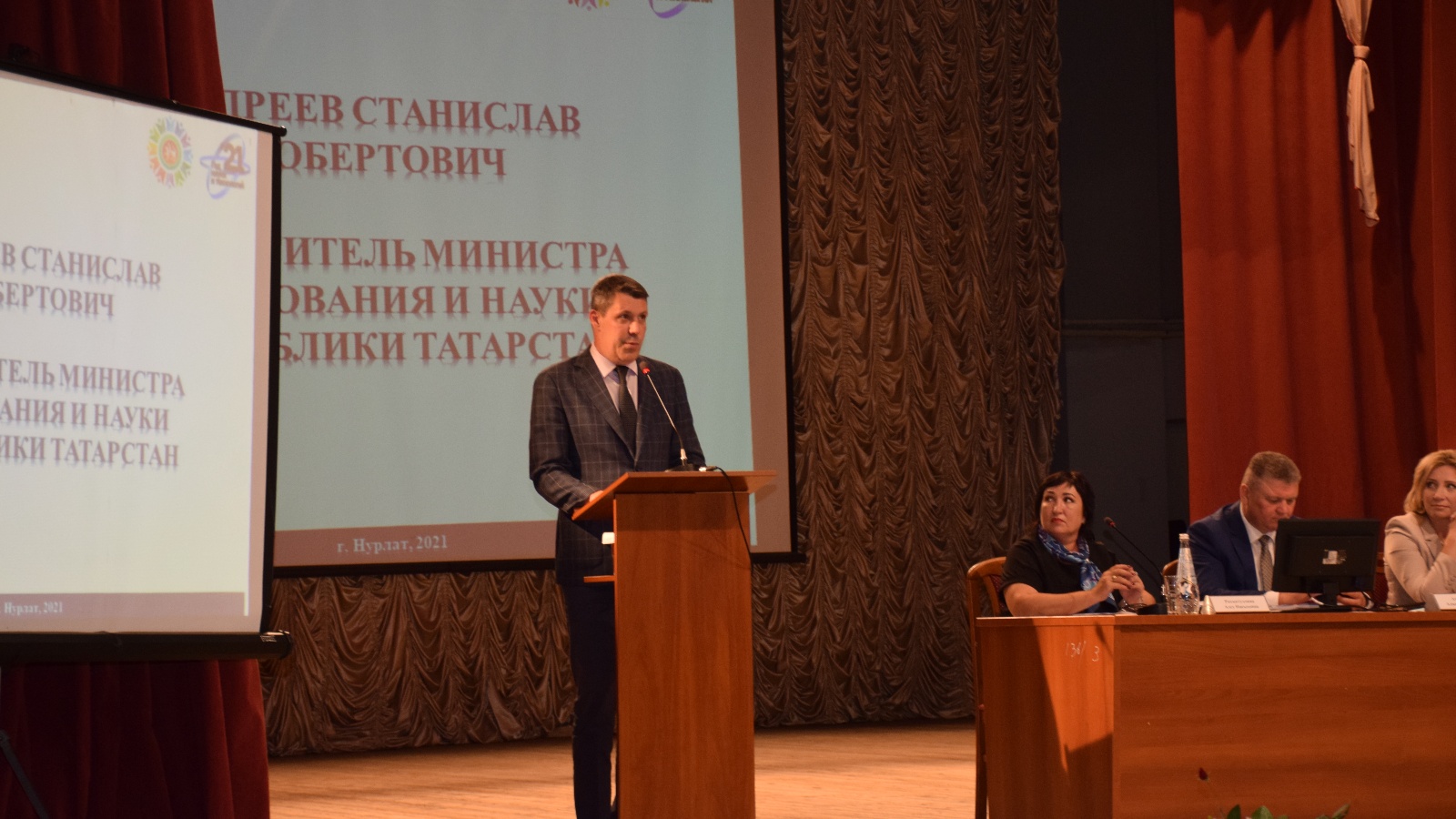 Нурлат педагогларын уку елы башланыр алдыннан Станислав Андреев һәм Людмила Рыбакова сәламләде. Район башлыгы үз теләкләрен җиткерде.