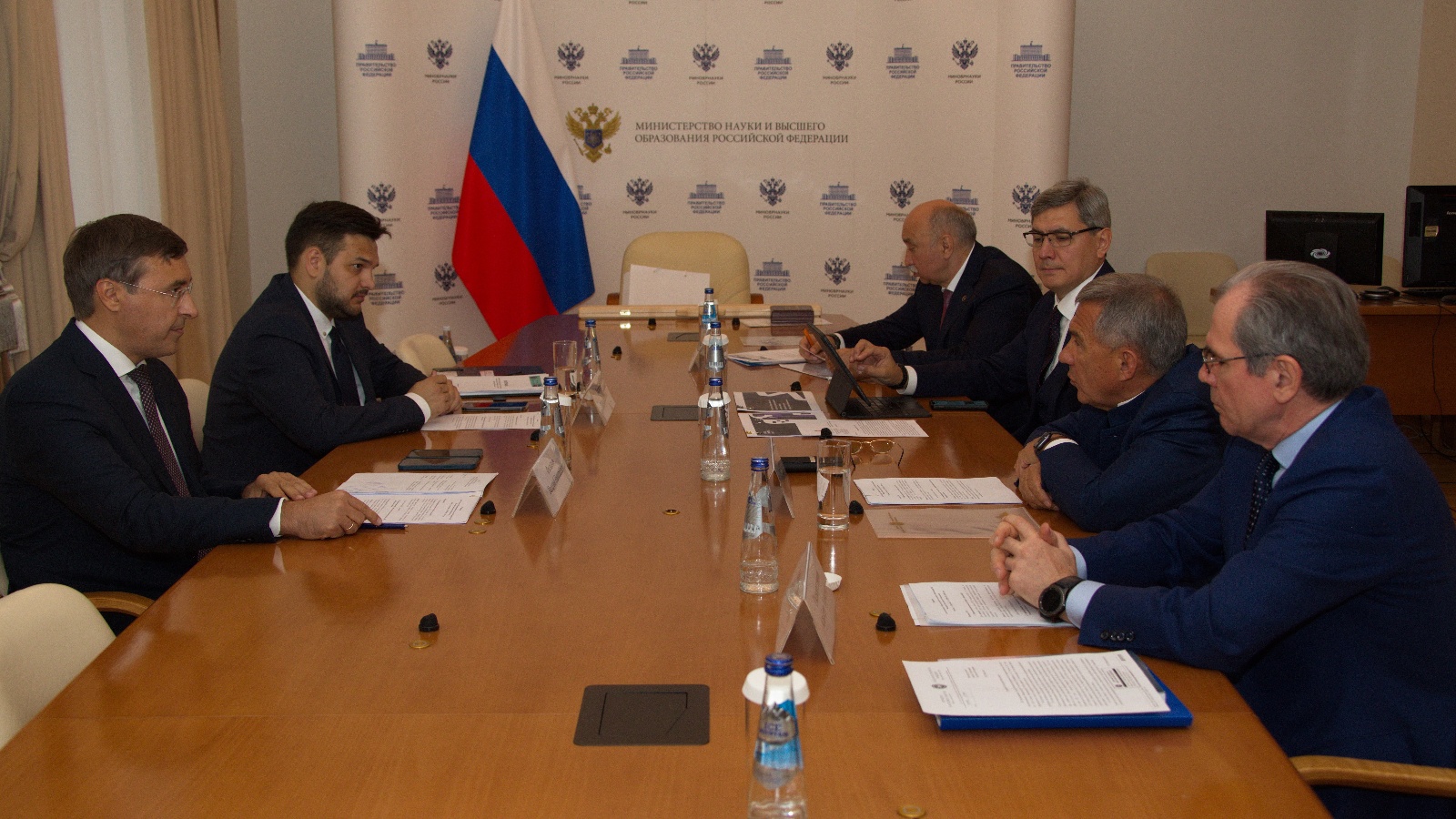 Эш сәфәре кысаларында Рөстәм Миңнеханов Россия Фән һәм югары белем министры Валерий Фальков белән очрашты. Очрашуда шулай ук Татарстан Республикасы Премьер-министры урынбасары Роман Шәйхетдинов, КФУ ректоры Илшат Гафуров, Татарстан Республикасы Президенты ярдәмчесе Альберт Гыйльметдинов катнашты.
