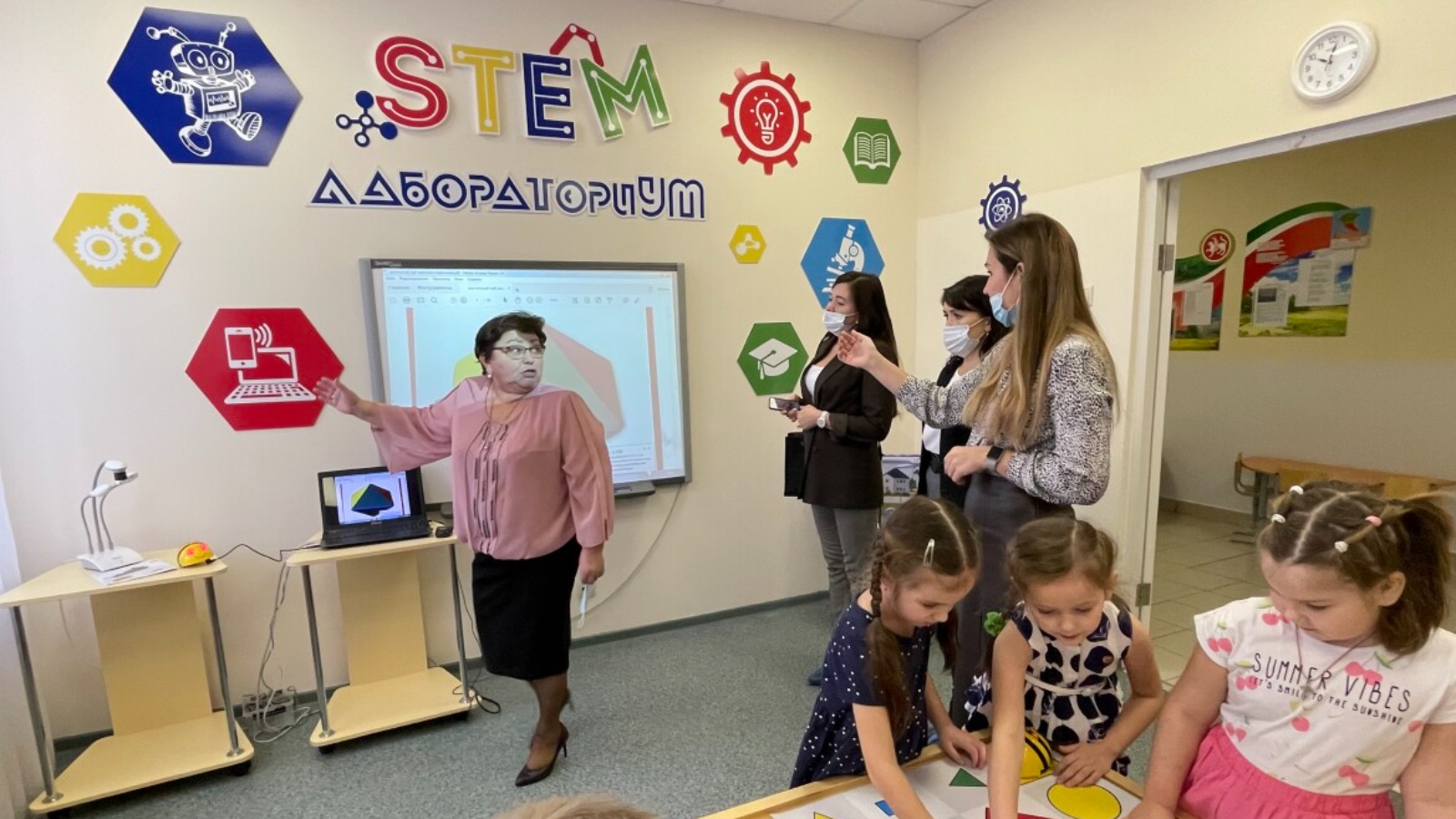 Цифрлы лаборатория ачылу мәктәпкәчә белем бирү бүлеге башлыгы Елена Одинцова катнашында узды. Ул укучыларга фән өлкәсендә, ә мәктәпкәчә белем бирү коллективына иҗади уңышлар теләде.