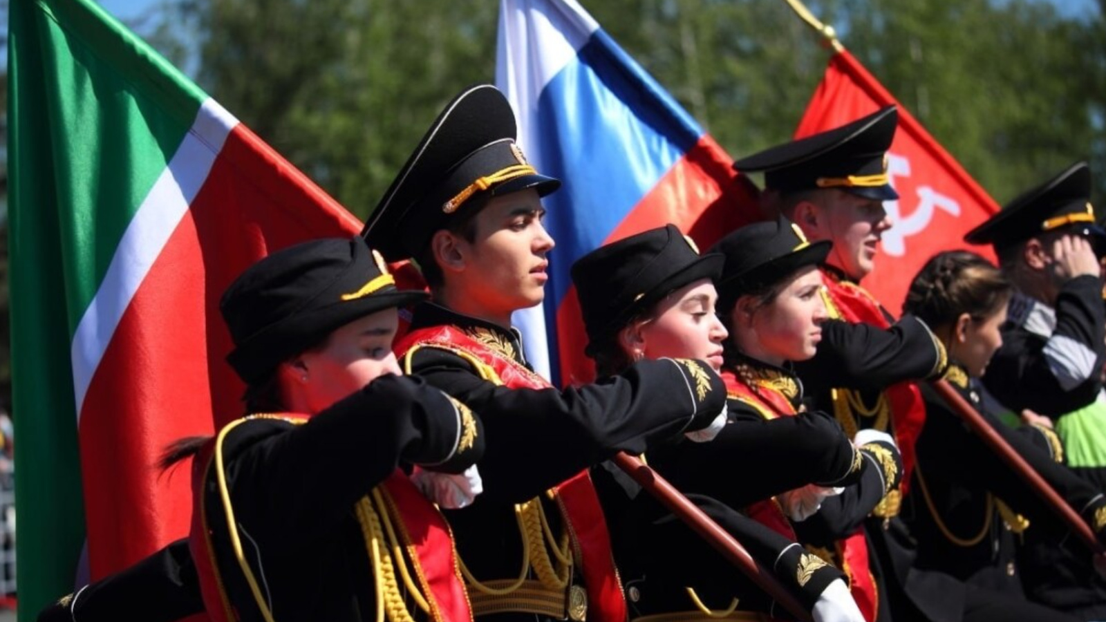 Казанның Җиңү паркында яшь армиячеләрнең, җәмәгать тәртибен саклау буенча яшьләр отрядларында катнашучыларның һәм хәрби училищеда тәрбияләнүчеләрнең бәйрәм парады булды. Чарага җыелучылар алдында 200дән артык егет һәм кыз тантаналы марш белән үттеләр. Гомумән алганда, хәрби-патриотик юнәлештәге Казан яшьләр хәрәкәтләрендә катнашучыларның 14 парад расчеты төз адымнар белән узды. Аннары катнашучылар Россия һәм Татарстанның дәүләт флагларын, шулай ук Җиңү байрагын чыгардылар.