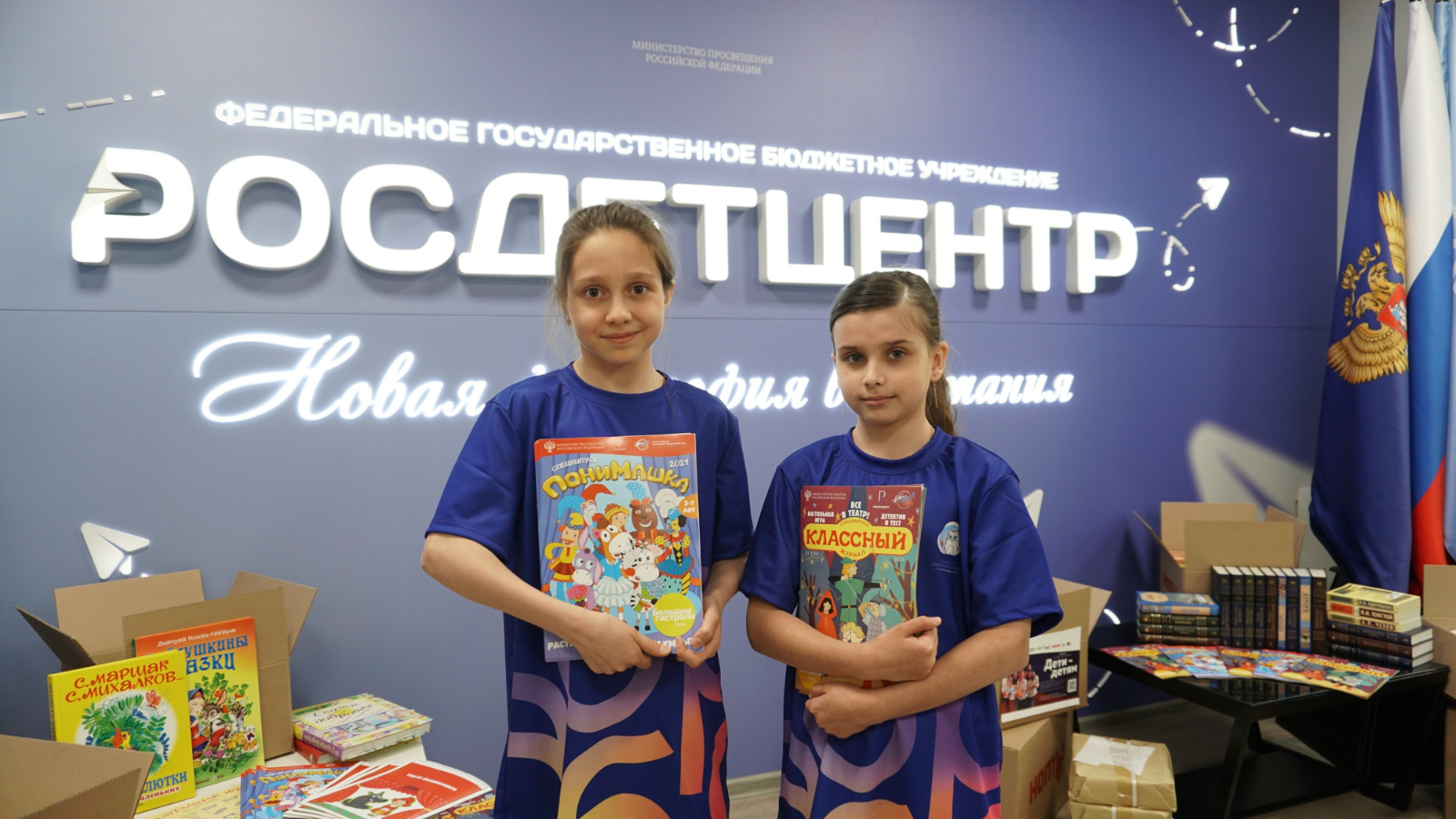 "Россия балалар үзәге”нең үзәк офисында "Балалар - балаларга" федераль ирекле акциясенең икенче сезонына беренче нәтиҗәләр ясалды. 12 майдан 22 майга кадәр Росдетцентр тарафыннан #МЫВМЕСТЕ бөтен Россия буенча гуманитар миссия белән берлектә оештырылган акциядә, Луганск һәм Донецк халык республикалары, Запорожье һәм Херсон өлкәләрендә яшәүче балалар һәм яшүсмерләр өчен 9000дән артык китап җыелган иде.