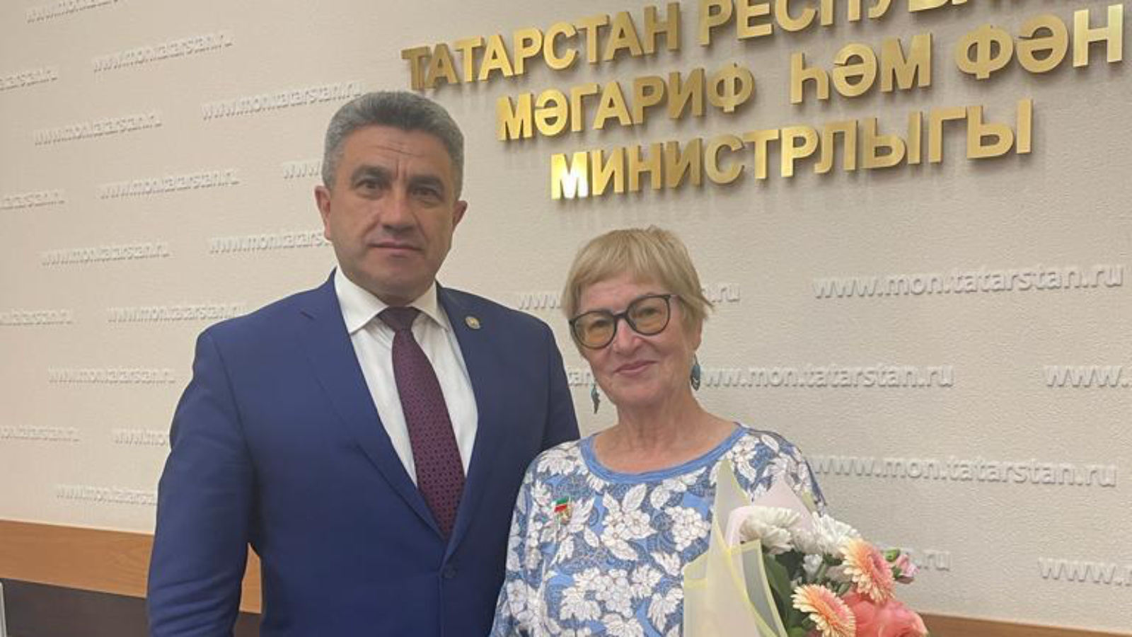 Татарстан Республикасы мәгариф һәм фән министры Илсур Һадиуллин Татарстан Мәгариф музее директоры Атряскина Һава Фатыйх кызын 75 яшьлек юбилее белән котлап “Мактаулы остаз” билгесен тапшырды.