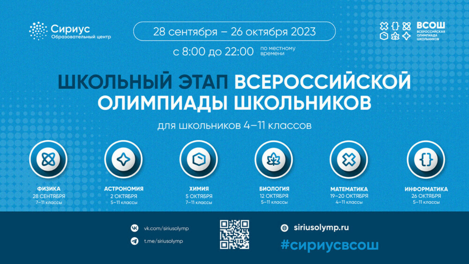 Олимпиадалардан соң укучылар шулай ук авыр темаларны өйрәнә, катлаулы бурычларны хәл итә һәм үзләре өчен яңа предметларны "Сириус.Курслар"да сынап карый алалар. Хәзерге вакытта 7 һәм 8 сыйныфлар өчен «Биологиянең өстәмә бүлекләре» уза . Мәктәп этабы турлары турындагы мәгълүматны siriusolymp.ru сайтында һәм социаль челтәрләрдә күзәтергә мөмкин.