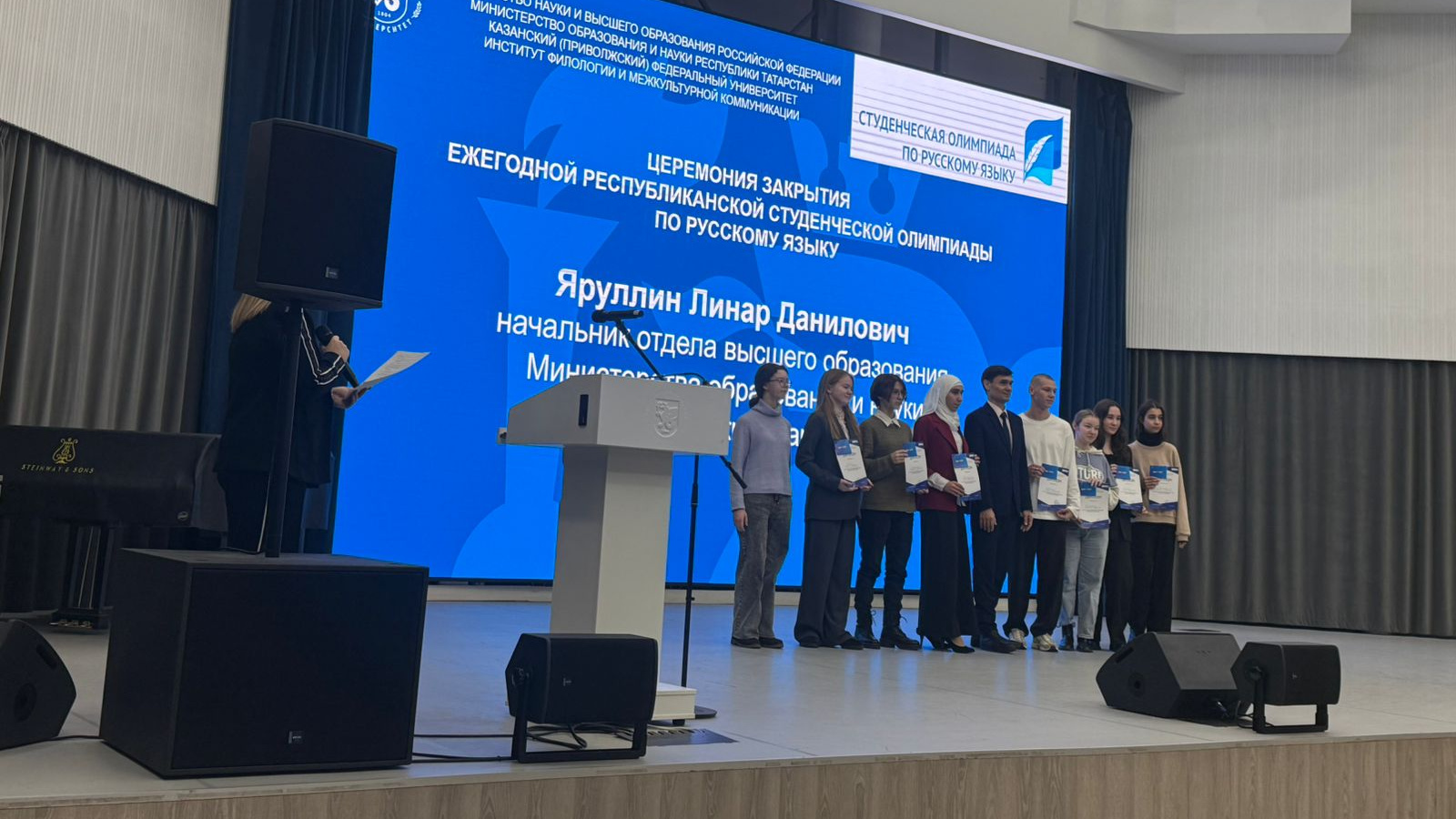 Рус теле буенча республика студентлар олимпиадасы үткәрелде. Рус теле буенча республика студентлар олимпиадасы Дәүләт программасы кысаларында Татарстан Республикасы Мәгариф һәм фән министрлыгы тарафыннан Россия милләтара аралашу һәм дәүләт бердәмлеге чарасы буларак рус телен алга җибәрү, яшьләрдә илебезнең мәдәни-тарихи мирасына кызыксыну тудыру, уку предметы буларак рус теленең абруен күтәрү, шулай ук сәләтле студентларга ярдәм итү максатыннан уздырылды.