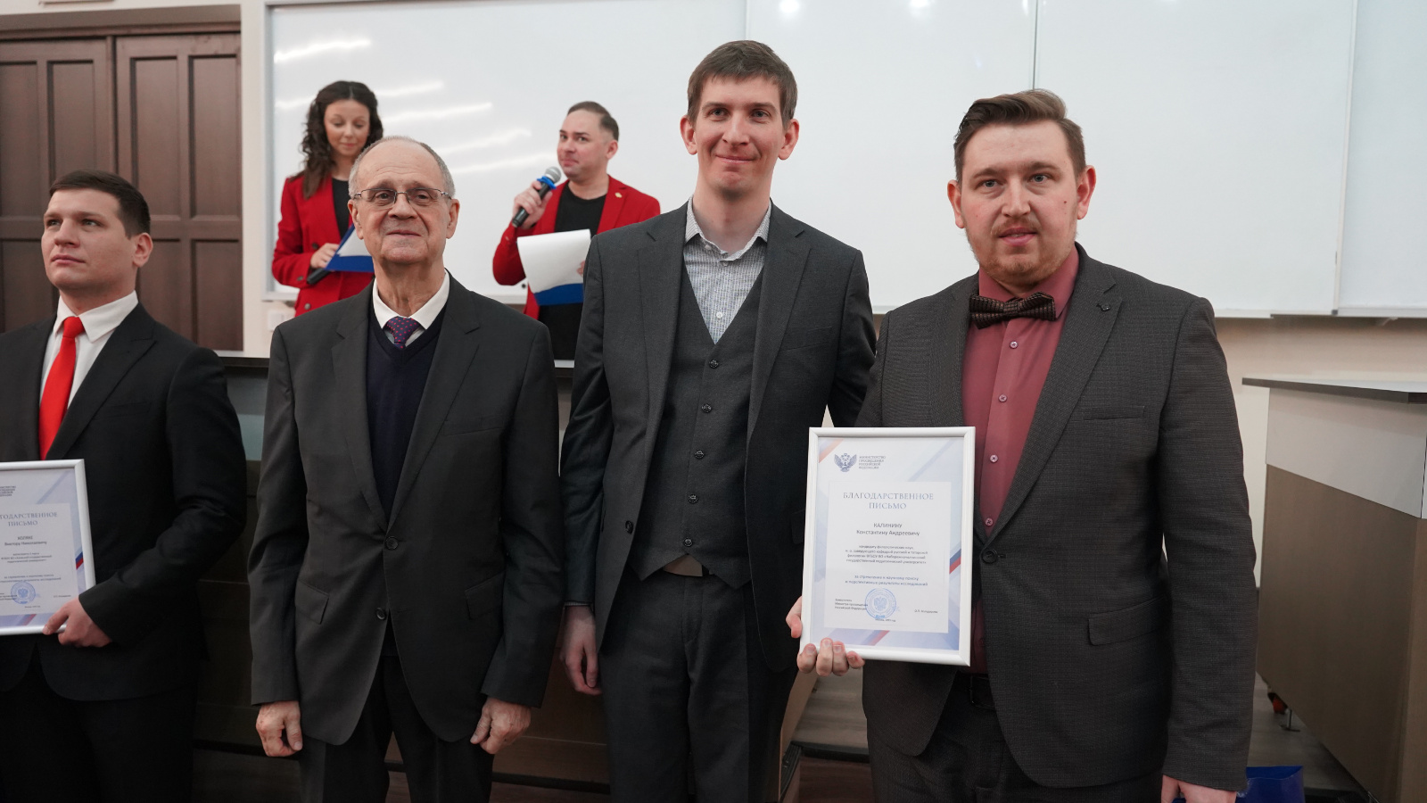 Мәгариф министрлыгының Рәхмәт хаты белән Яр Чаллы дәүләт педагогика университетының рус һәм татар филологиясе кафедрасы мөдире вазифаларын башкаручы, филология фәннәре кандидаты Калинин Константин Андреевич бүләкләнде.