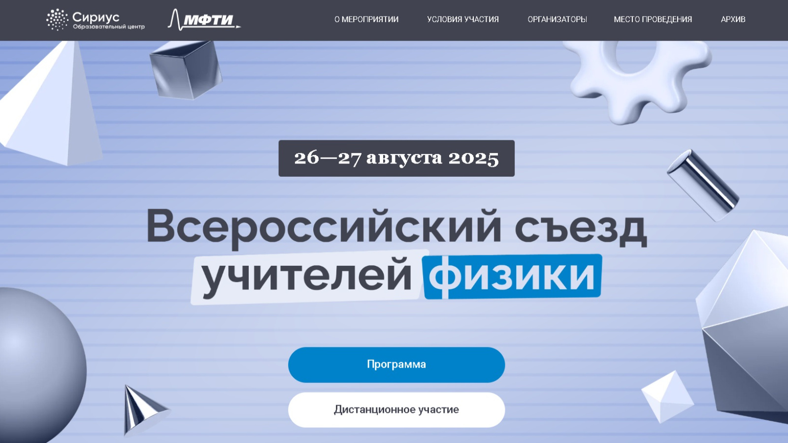 26 - 27 августта «Сириус» мәгариф үзәгендә физика укытучыларының Бөтенроссия съезды узачак.